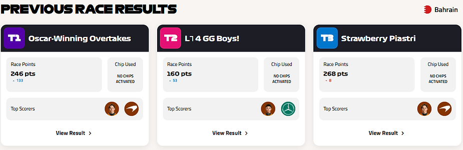 These are my current teams going in to the Saudi Arabian Grand Prix: